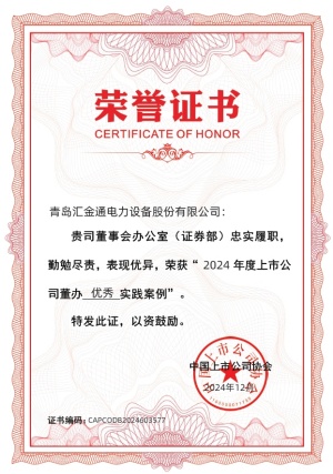 2024年,匯金通以規(guī)范運(yùn)作為主線,優(yōu)化公司治理結(jié)構(gòu),提升信息披露的有效性,強(qiáng)化投資者關(guān)系管理,踐行“以投資者為本”的理念,創(chuàng)新業(yè)績(jī)說(shuō)明會(huì)召開方式,構(gòu)建多元化交流渠道,積極提升與投資者的溝通交流質(zhì)效。公司憑借在規(guī)范運(yùn)作、信息披露、投資者關(guān)系管理等方面的優(yōu)異表現(xiàn),榮膺資本市場(chǎng)多項(xiàng)榮譽(yù)。